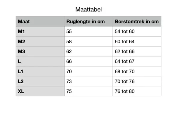Een maattabel is toegevoegd aan de productafbeeldingen, zodat u eenvoudig de juiste maat kunt bepalen.