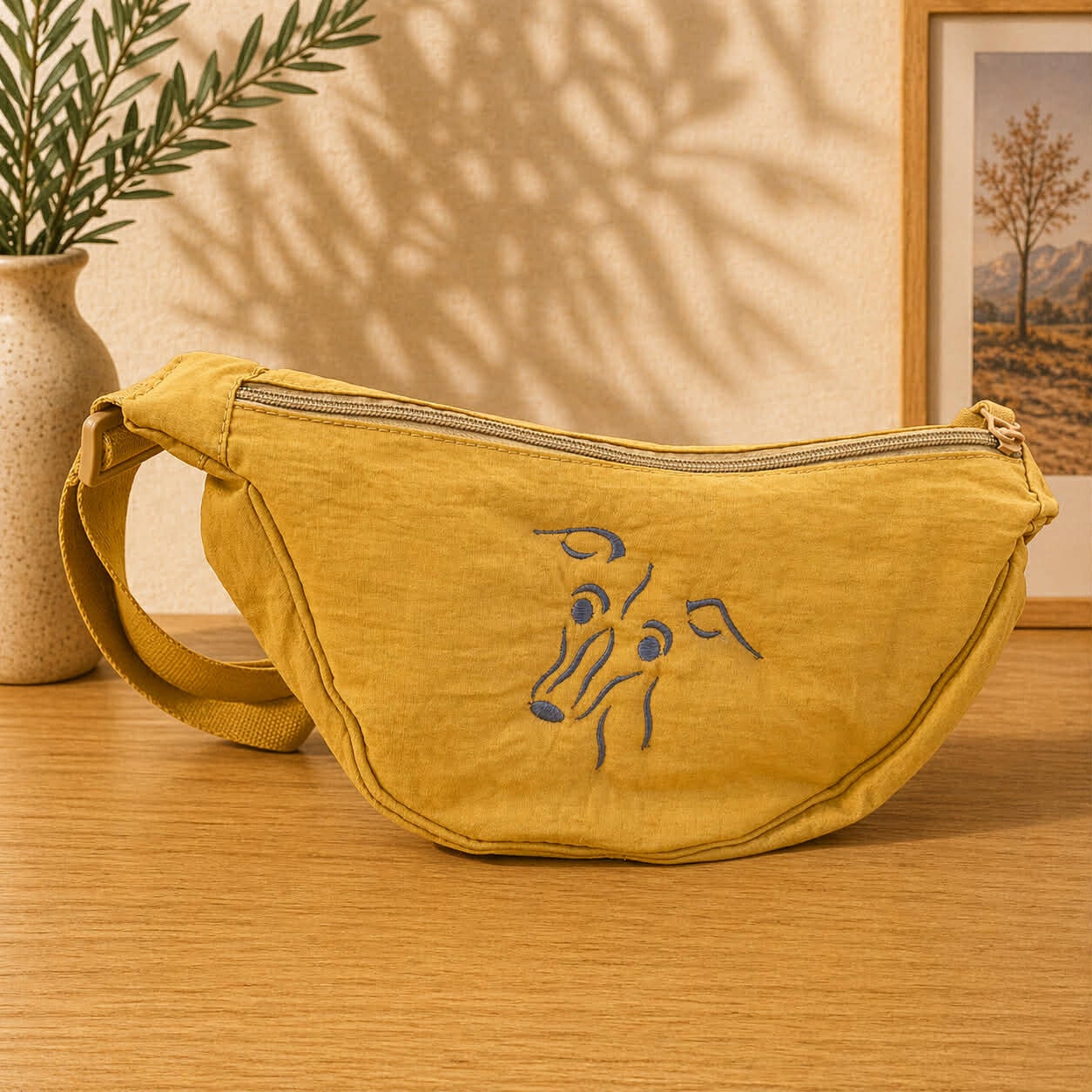 Schoudertas Oker - Windhond borduring