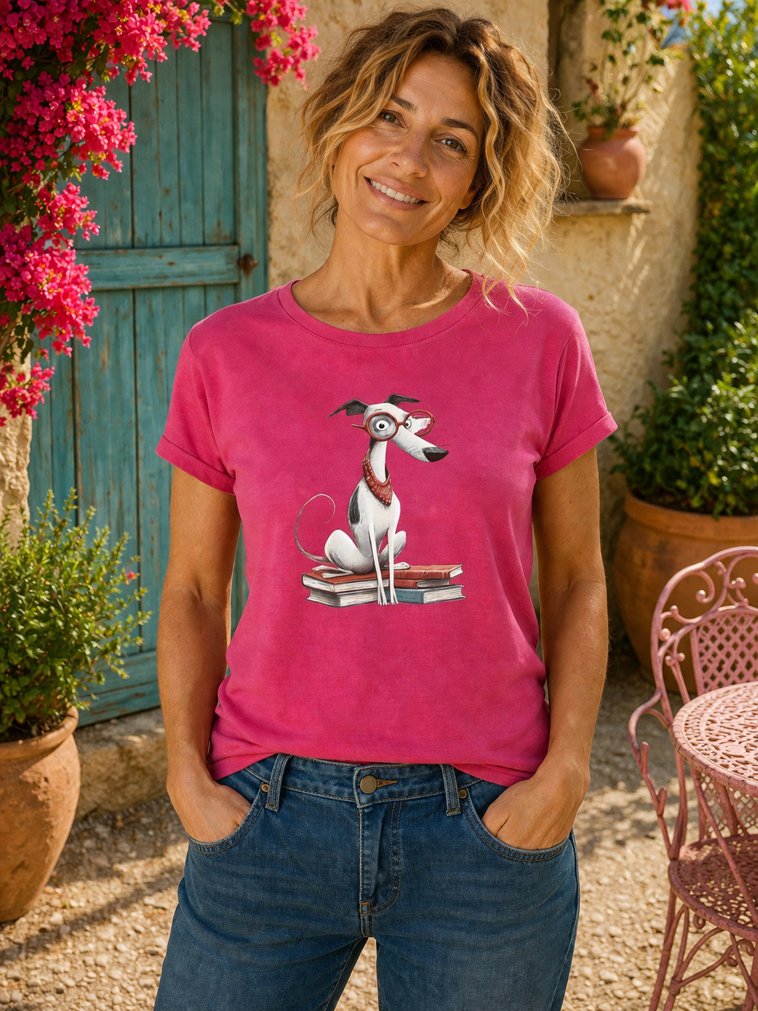 Roze dames T-shirt met Windhondprint